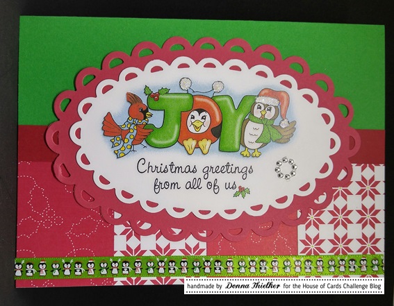 This week was Joy's choice and she choose glitter. I will let you in on a little secret, I am not a glitter gal, it stays on me and I find it all over my house forever. But I decided to get messy and use real glitter for Joy's challenge. Okay you are asking where is it. I stamped up this darling